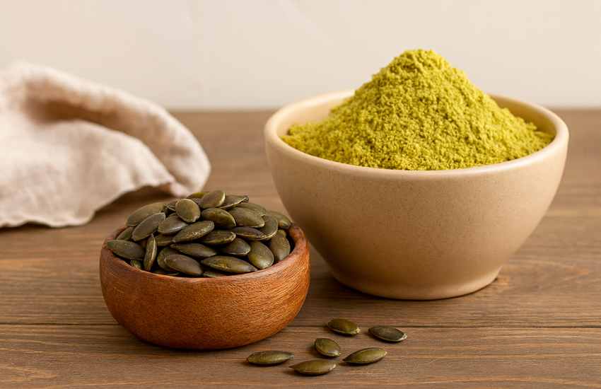 Regular consumption of pumpkin seed flour supports prostate health in men due to its phytosterol content. Additionally, pumpkin seeds have traditionally been known for their anti-parasitic properties. Their mild flavor makes the resulting flour perfect for both sweet and savory baked goods.