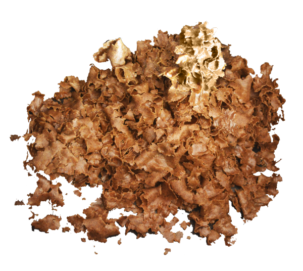 The by-product, or press cake, is shaped like “chips.” A high-energy, nutrient-rich raw material suitable as animal feed or for pellet production. Can also be used for flour, baking ingredients, or salads.